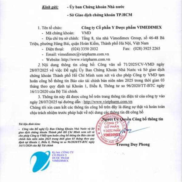 Công văn hoãn BCTC đến 28/10