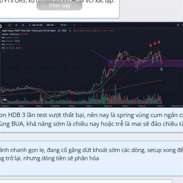 Trong nhóm Ngân hàng, Team em đang theo dõi sát với mã HDB. Mã này đã được nhắc đến trong kịch bản hằng ngày mà Team chia sẻ, và sau khi chọn lọc tín hiệu kỹ t...Thêm