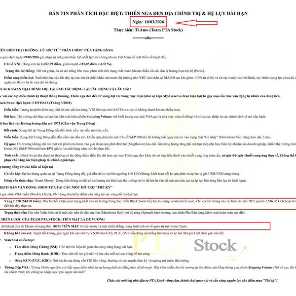 CẨN TẮC VÔ ƯU! Thị trường trải qua một phiên đầy khốc liệt ngày 23/03/2026 khi VN-Index rơi về 1.591,17 điểm, giảm gần 57 điểm. Diễn biến này cho thấy những cảnh báo và phân tích trước đó, đặc biệt về ...Thêm