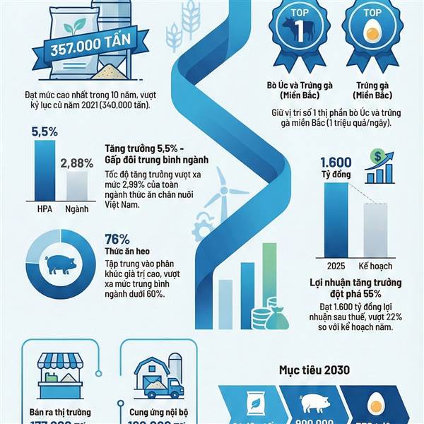 Năm 2025, CTCP Phát triển Nông nghiệp Hòa Phát (HPA) ghi nhận doanh thu 8.326 tỷ đồng, tăng 18% so với năm 2024, vượt 4% kế hoạch đề ra. Lợi nhuận sau thuế đạt 1.600 tỷ đồng, tăng 55% so với cùng kỳ, ...Thêm