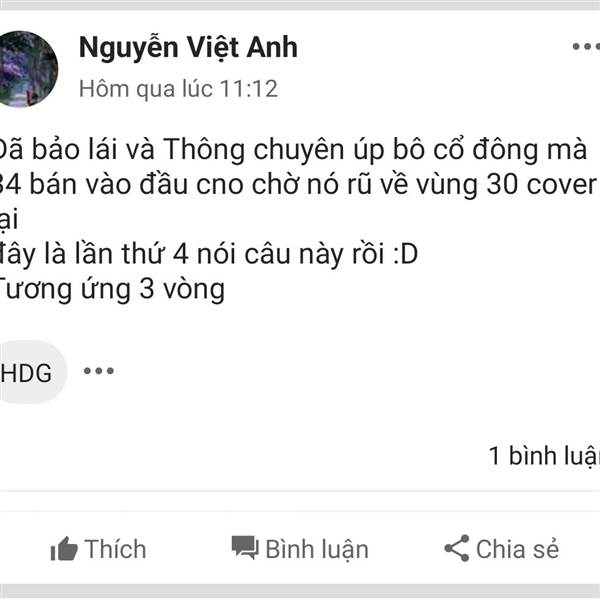 Qua nay hóng trên này thì thấy có 2 phe đang tranh cãi nảy lửa, 1 phe hô sàn tiếp nhiều phiên,phe còn lại nói vùng đáy rồi ko sàn.Để xem hôm nay kết quả thế nào Ps : Hôm thứ 6 mình cũng mua giá sàn,cũn...Thêm