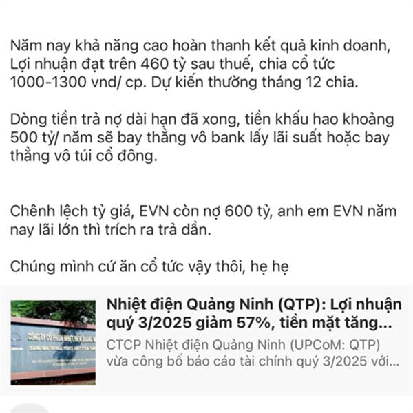 Hehe vốn chủ sở hữu QTP = vốn hoá trên sàn = 6000 tỷ.