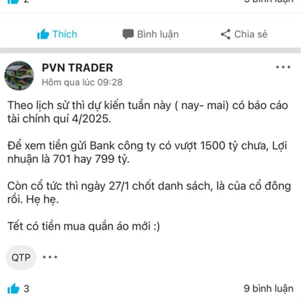 Các bạn ơi. Lợi nhuận sau thuế 1050 Tỷ, đủ chia cho các bạn 2500 vnd/cp.