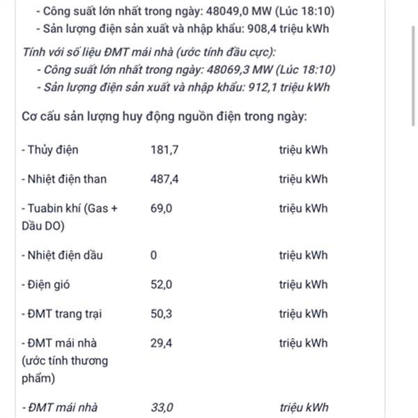 Ngày 21/1. Nhiệt điện than chiếm 53% tổng công suất phát điện cả nước, gấp 3 lần nguồn điện rẻ nhất hệ thống là Thuỷ điện .