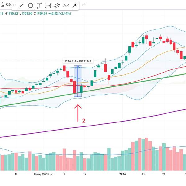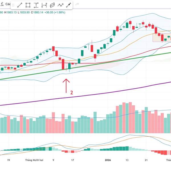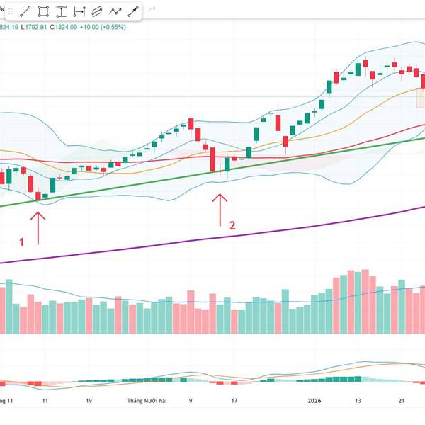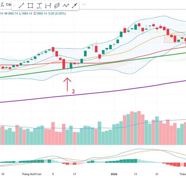 • Giá bật lên từ vùng hỗ trợ ~1.730–1.750 và quay lại trên MA20, MA50.