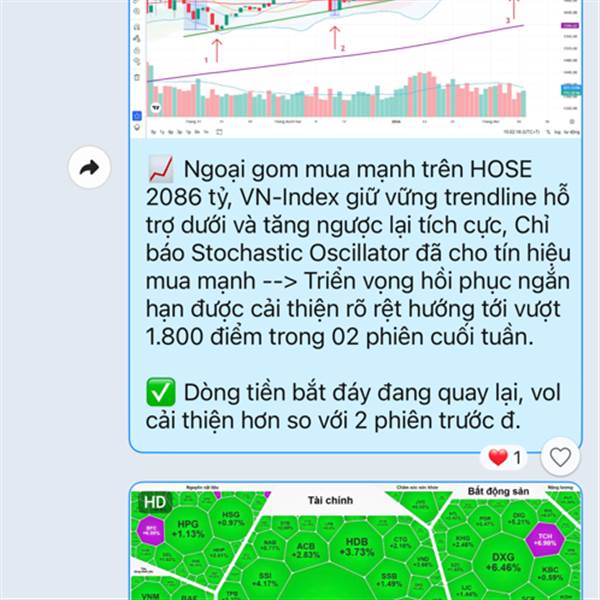 👉 Phiên tăng thứ 2 liên tiếp, giữ vững vùng 1,800 → nhịp hồi sau giảm mạnh đang được củng cố.