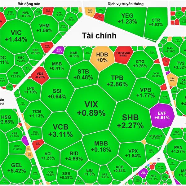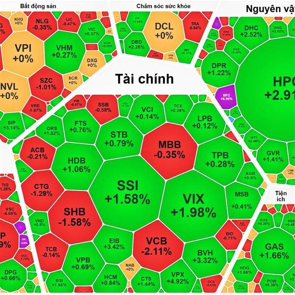 VN-Index duy trì tăng điểm, dẫn dắt bởi nhóm cổ phiếu nhà VIN và một số Bluechips.