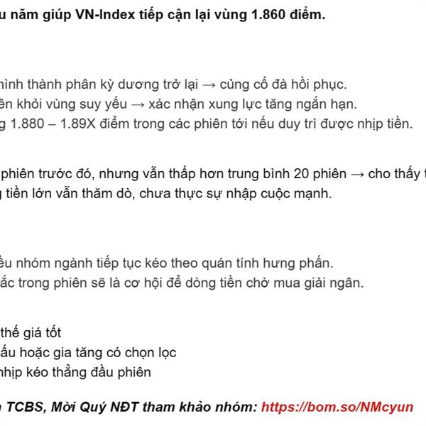Tham gia nhóm TCBS và VPS thì nhìn ảnh đại diện quét QR zl Nhóm hỗ trợ tư vấn điểm mua, điểm bán cổ phiếu: https://bom.so/NMcyun