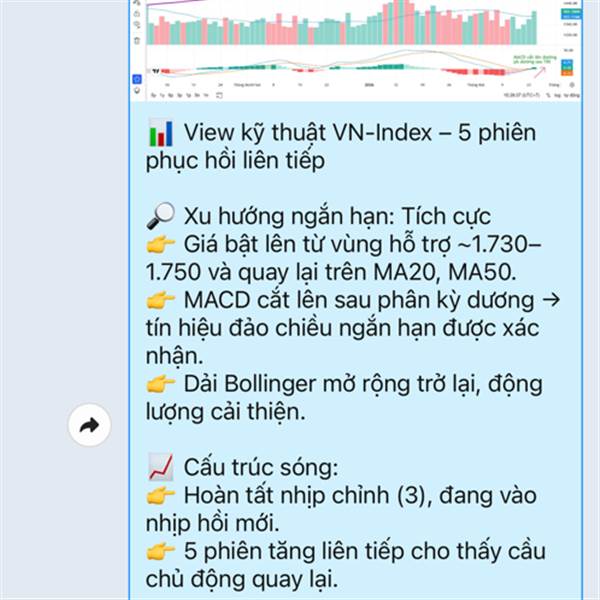 📊 View kỹ thuật VN-Index – 5 phiên phục hồi liên tiếp
