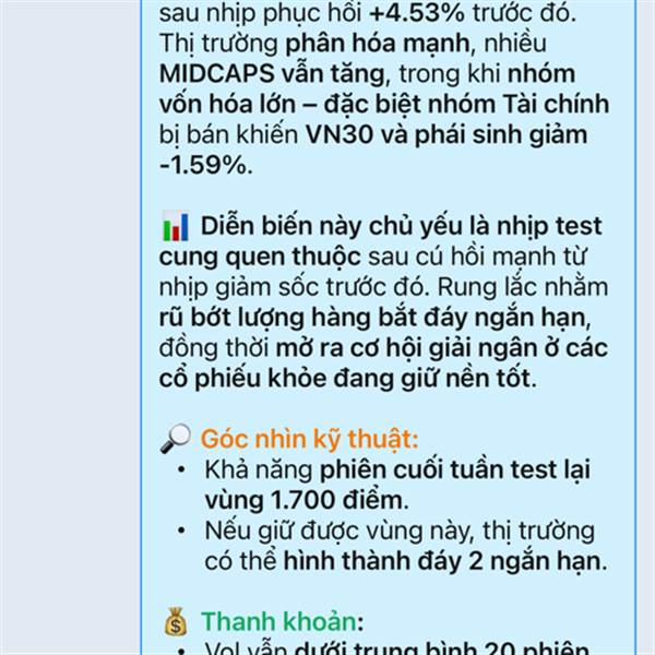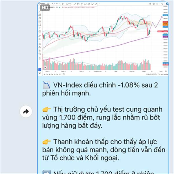 📉 Kết tuần: VN-Index giảm phiên thứ 2 liên tiếp, mất mốc 1.700 điểm nhưng độ rộng không quá lệch, cho thấy thị trường phân