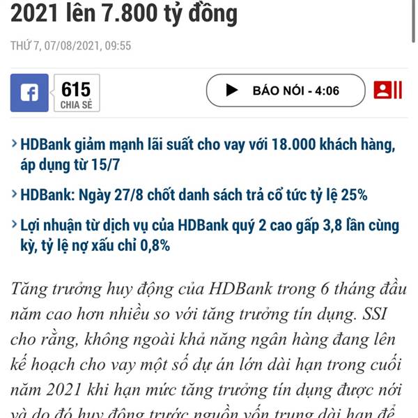 HDBS tăng vốn vựợt 1000 tỷ, đã giữ HDB 2 năm và thấy công ty phát triển rất nhanh. Tích cực.
