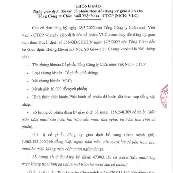 ngày 31/05/2022 cổ phiếu chuyển đổi từ GTN sang VLC được giao dịch mua bán trên sàn.