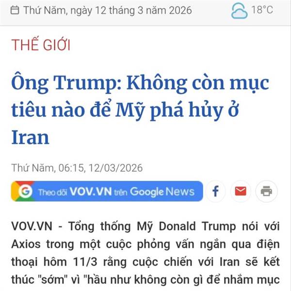 Chump nói chiến tranh với Iran sẽ sớm kết thúc. Nhưng Iran có kết thúc không thì không biết. Vì game này không giống game thuế quan, bóng không hoàn toàn trong chân cụ. Theo anh em lời nói của Chump có...Thêm