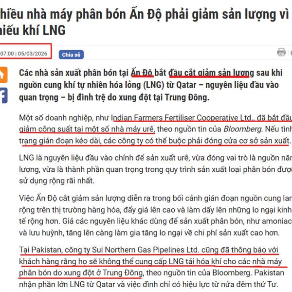 Ấn độ - tay chơi lớn trên thị trường phân bón - đã có dấu hiệu cắt giảm sản lượng Ure vì thiếu khí. Điều này có khả năng buộc Ấn độ phải gia tăng đấu thầu => làm tăng giá Ure