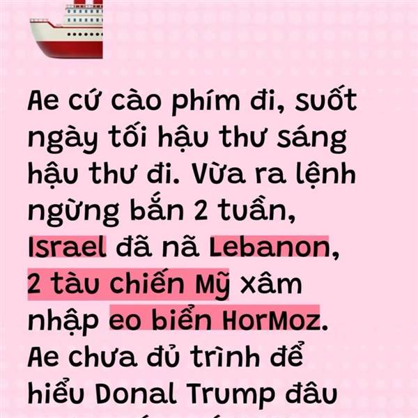 Trung Quốc rất vui vì tôi đang mở cửa vĩnh viễn Eo biển Hormuz. Tôi cũng đang làm điều đó cho họ - Và cả thế giới. Tình huống này sẽ không bao giờ xảy ra nữa. Họ đã đồng ý không gửi vũ khí cho Iran. C...Thêm