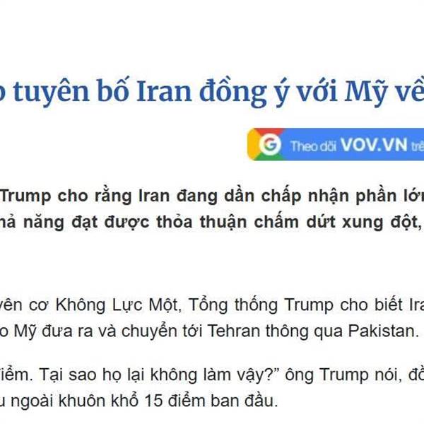 TÍCH CỰC : Iran cơ bản đồng ý 15 điều khoản của Mỹ và ngừng bắn.