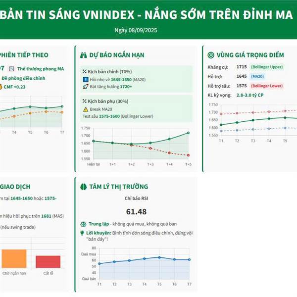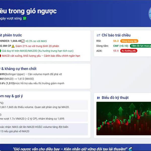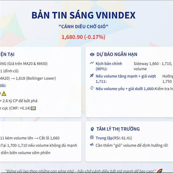 🎯 **DỰ BÁO & KHuyẾN NGHỊ** - **Kịch bản chính (80% tự tin)** - Giá tiếp tục hướng lên **56.81 (Bollinger Upper)** và thử nghiệm **58.30 (đỉnh cũ)**. - Nếu volume tăng trên 4.9M (1.8x VMA20), kh...Thêm