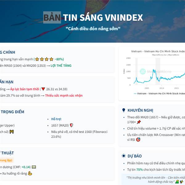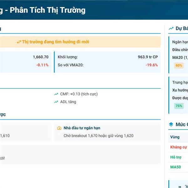 🎯 **Dự Báo và Khuyến Nghị** - **Dự báo ngắn hạn (1-2 tuần)**: Giá có thể dao động quanh **27.00–29.00**, với khả năng điều chỉnh về **25.59** (Bollinger Lower) nếu khối lượng không cải thiện. - ...Thêm