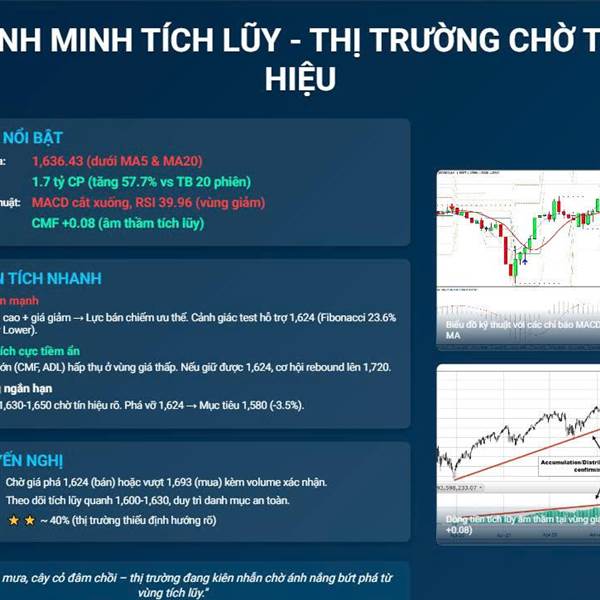 📌 ĐIỂM NỔI BẬT - **Giá đóng cửa**: 1,636.43 (📉 dưới MA5 & MA20) - **Khối lượng**: 1.7 tỷ CP (🔥 tăng 57.7% vs TB 20 phiên) - **Tín hiệu kỹ thuật**: ...Thêm