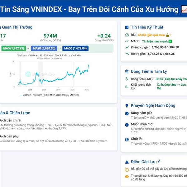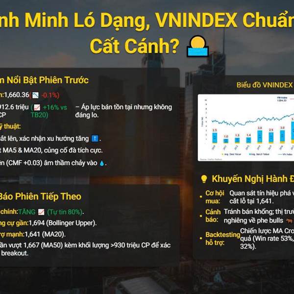 Bản Tin Sáng: Cánh Diều Vươn Cao, Đón Gió Điều Chỉnh Chào anh chị, Thị trường tiếp tục duy trì đà tăng mạnh mẽ, nhưng những tín hiệu kỹ thuật ngắn hạn đang nhắc nhở về một phiên có thể chao đảo nhẹ. Dướ...Thêm