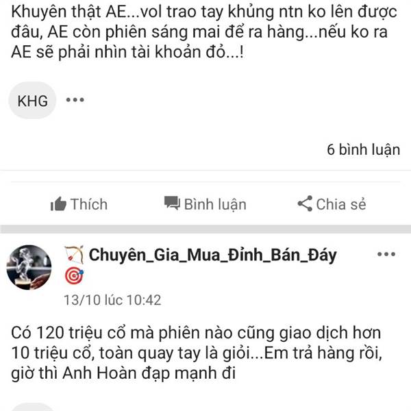 Khuyên thật AE...vol trao tay khủng ntn ko lên được đâu, AE còn phiên sáng mai để ra hàng...nếu ko ra AE sẽ phải nhìn tài khoản đỏ...!