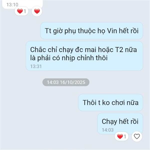 Đếu hiểu các Ông hi vọng gì ở con này...thấy chart đẹp vào cái thấy quay vol thóp tim...đúng T+2.5 hàng về phát ra sạch luôn lúc 13h00 giá xấu nhất ngày cũng ko 1 chút hối tiếc...vol tay trái qua tay ...Thêm