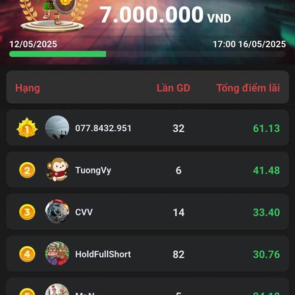 Mời anh chị tham gia phiên live thực chiến phái sinh phiên sáng ngày 07/05/2025