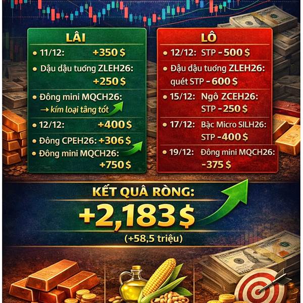✅ Dầu đậu tương ZLEH26: +350$ → Lãi thực tế +684$ (đã nâng chốt lời dương)