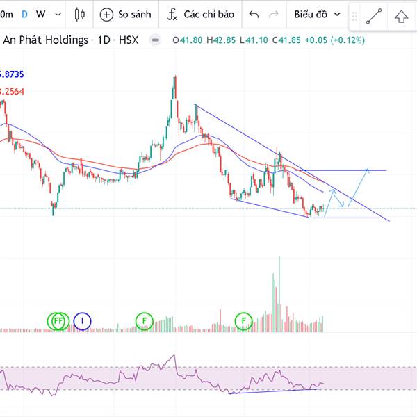 1. xu hướng chính là giảm nhưng có dấu hiệu hội tụ 2 đáy (tin hiệu đảo chiều)