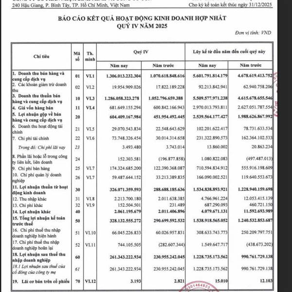 Tiếp tục tăng trưởng .Lên nền tầm 100 tỷ /quý là ổn rồi. Cứ túc tắc 2026 vượt tiếp.