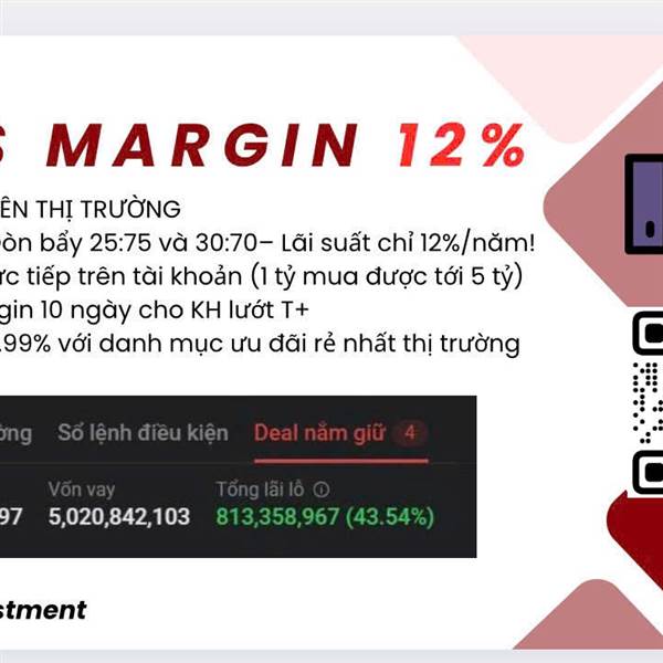 TCBS hiện đang hỗ trợ margin 50%, lãi chỉ 12%/năm – quá hợp lý để xoay vốn giai đoạn này.