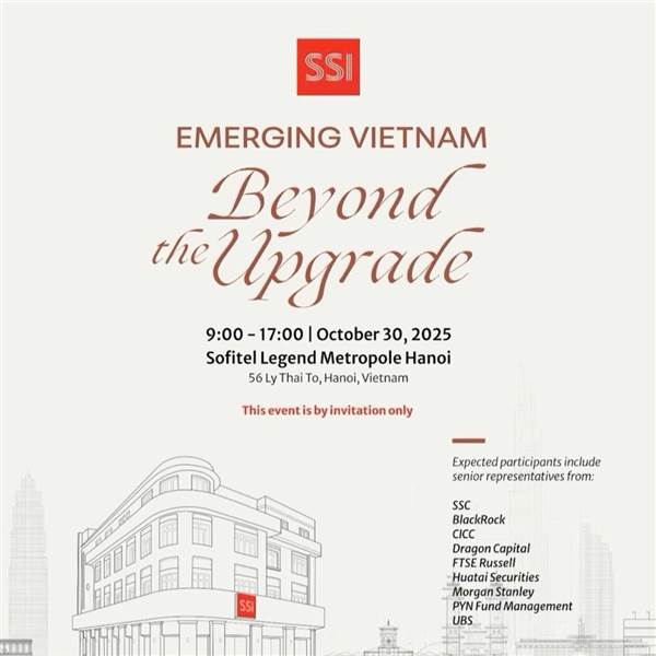 Sự kiện “Emerging Vietnam: Beyond the Upgrade” do SSI dự kiến tổ chức vào ngày 30/10/2025 tại Sofitel Legend Metropole Hanoi là một trong những dấu mốc quan trọng hậu nâng hạng thị trường Việt Nam, vớ...