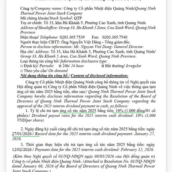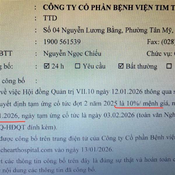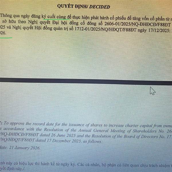 Chốt ngày 26/01/2026 chia cổ phiếu 100%