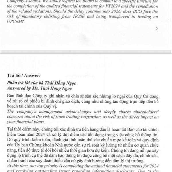 Câu trả lời thiếu thuyết phục và kêu thời gian kéo dài hơn dự kiến vậy là sẽ không có bctc nào đc ra vào ngày 31 này đâu các bạn ạ