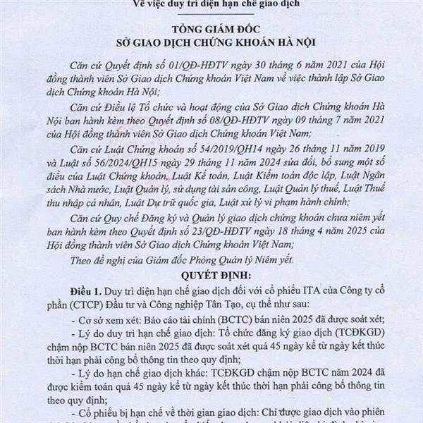 Các bác cho mình hỏi, với văn bản này thì thứ 6 này ITA được giao dịch trở lại phải không