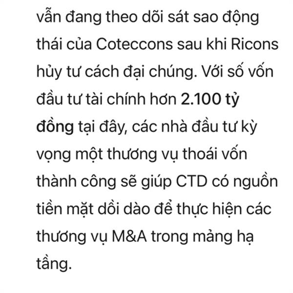 Thoái vốn chỉ là hư chiêu, còn hậu chiêu có lẻ nào là M&a hệ sinh thái Newtecons về CTD ko?