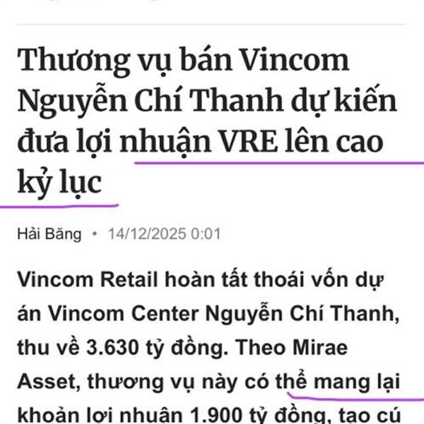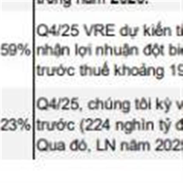 VRE giá chưa tăng mấy mà lợi nhuận Quý 4 này tăng trưởng rất mạnh, năm nay VRE lãi cao kỷ lục (core chính vẫn tăng trưởng rất tốt). VIC và VHM đã vượt xa đỉnh cũ rồi, còn VRE vẫn cách xa đỉnh cũ giá 4...Thêm