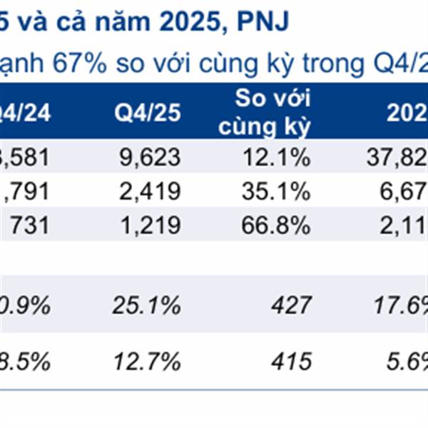 Lợi nhuận thuần tăng mạnh 67% so với cùng kỳ đạt 1.219 tỷ đồng. Lợi nhuận thuần Q4/2025 ghi nhận mức cao nhất từ trước đến nay