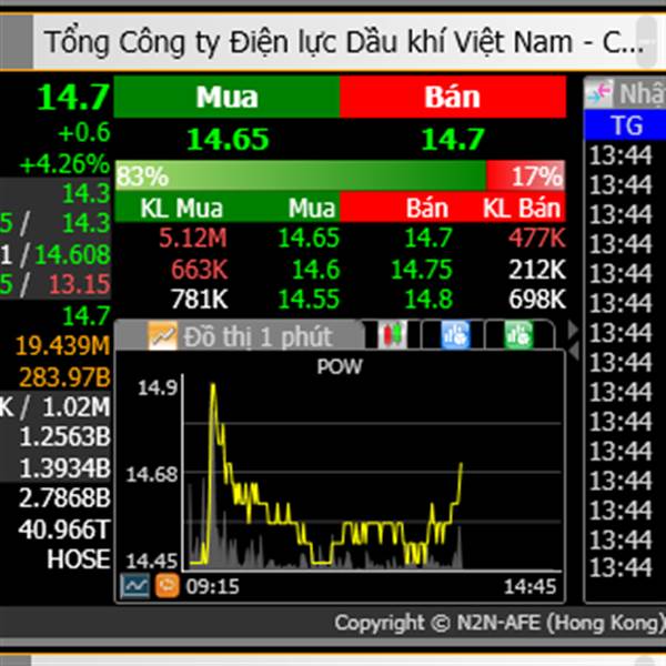 POW: phiên thứ 2 khớp lệnh với giá trị GD hơn 1k tỷ.