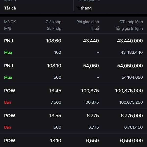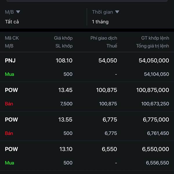 Đã chốt lời từng phần, hiện còn 7k5 POW giá vốn 12.987.