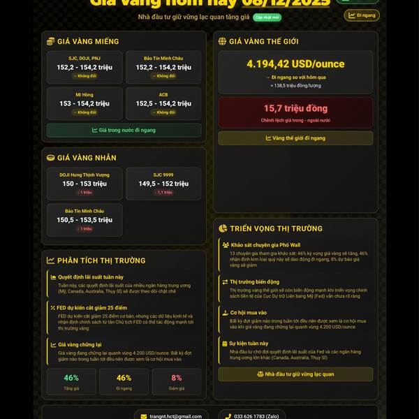 💰 GIÁ VÀNG HÔM NAY (08/12/2025): NHÀ ĐẦU TƯ GIỮ VỮNG LẠC QUAN TĂNG GIÁ