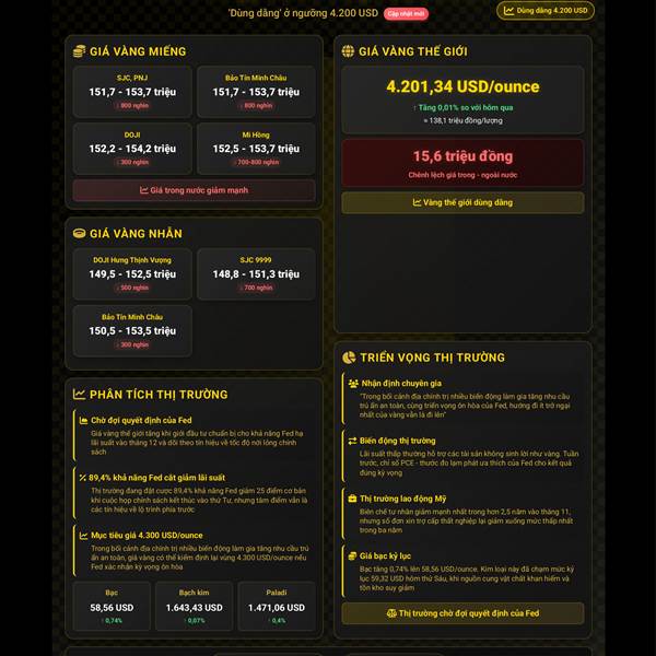 🪙🌟 GIÁ VÀNG HÔM NAY (10/12/2025): "DÙNG DẰNG" Ở NGƯỠNG $4200/OUNCE