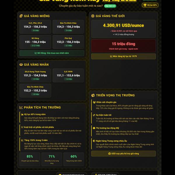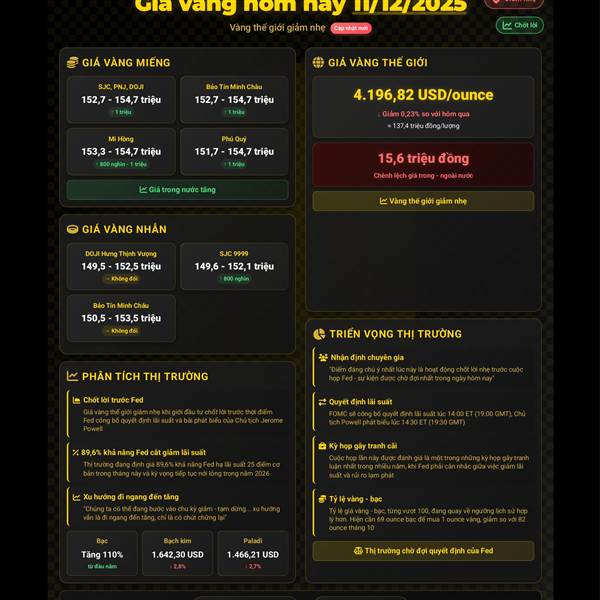 💰📉 GIÁ VÀNG HÔM NAY (11/12/2025): GIÁM NHẸ KHI NHÀ ĐẦU TƯ CHỐT VÀO THỜI ĐIỂM FOMC