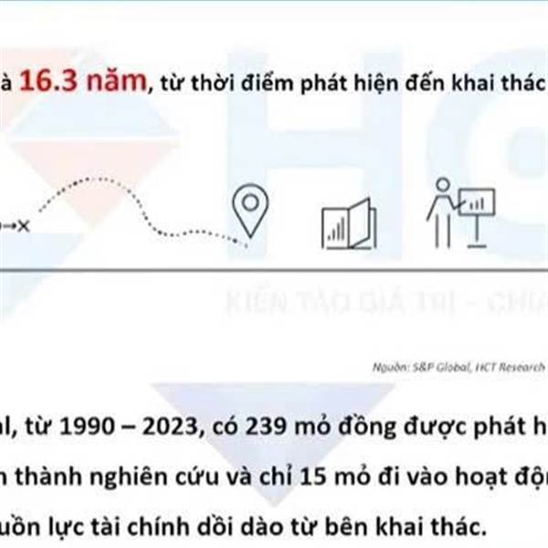- 16,3 năm là thời gian trung bình 1 mỏ từ thời điểm phát hiện đến khai thác