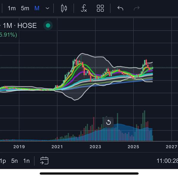 Cây nến tháng 6 phá đường line tính từ điểm đó giá tăng được hơn 20% trong 3 tháng, ace nên cầm thêm 5 tháng nữa từ điểm phá này(cất tủ) cuối năm lên 1x(Quy tắc nắm giữ 8 tuần áp dụng cho 8 tháng)