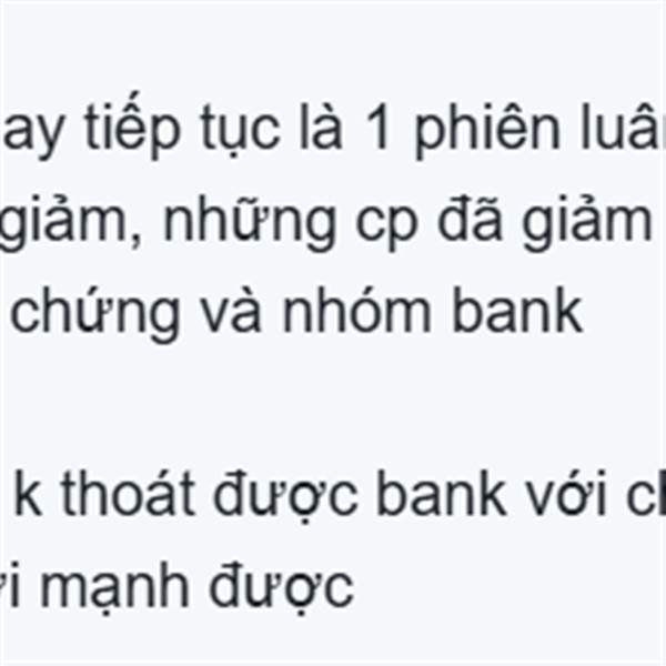 TÌNH HÌNH TT RẤT ỔN ĐỊNH, BẤT ĐỘNG SẢN KÉO XONG THÌ NGHỈ NGƠI NGẮN, LẠI ĐẾN BANK CHỨNG KÉO, LAN TỎA CÁC NGÀNH K AI BỊ BỎ LẠI HOÀN TOÀN