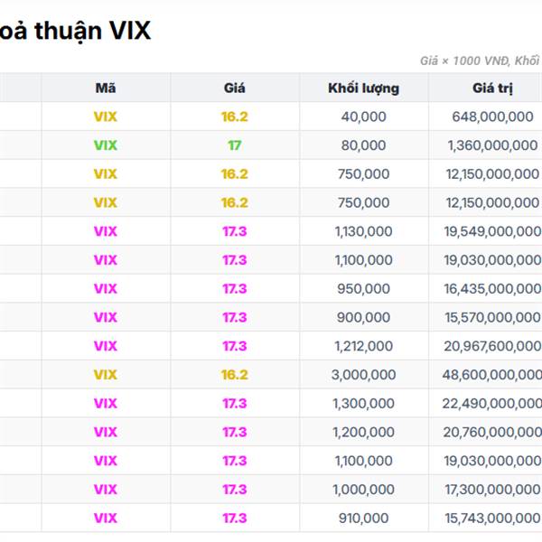 VIX - giao dịch thỏa thuận giá trần ngày 20/03/2026 ae mua thứ 6 rồi có đỡ áp lực phần nào không