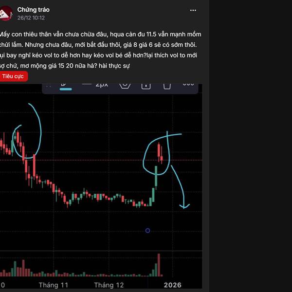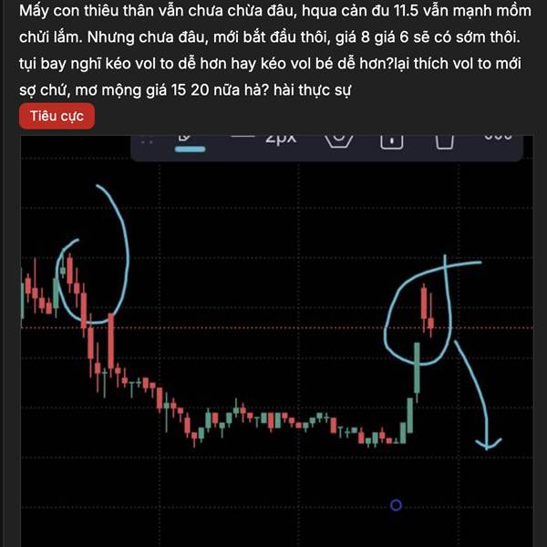 Mấy con thiêu thân ng *u vẫn chưa tỉnh mộng, lỡ đu rồi vẫn nghĩ là lái đè giá ép hàng và DCA trong vô vọng =)) nó xả từ 11.5 sml vẫn th*ẩm d*u tinh thần được thì cũng hay. Sắp tới giá 8 bật lên cho ba...Thêm