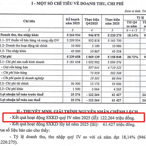 Đợi mãi KQKD Q4: Lỗ 122T