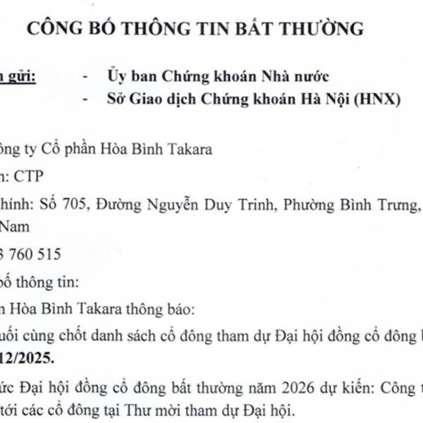 16/12/2025 chốt DS tổ chức ĐHCĐ bất thường năm 2026. Có gì hay ho không các bác,